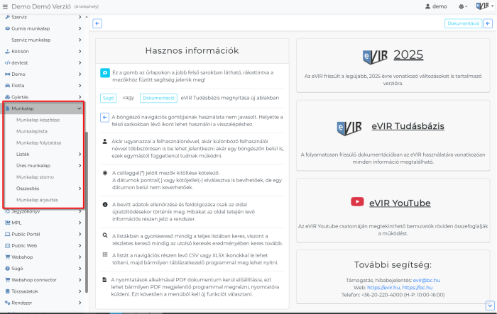 A nyitott munkalapok listája, a Munkalaplistától, abban különbözik, hogy a lista sorára kattintva a kiválasztott munkalap folytatására van lehetőség, a munkalap szerkesztő oldalára érkezik a felhasználó.