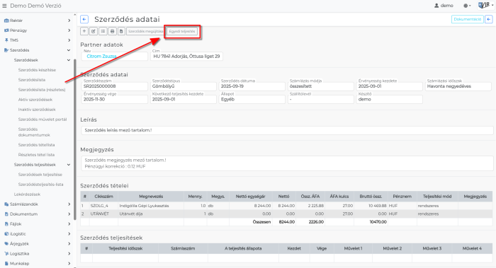 Szerződés egyedi teljesítése